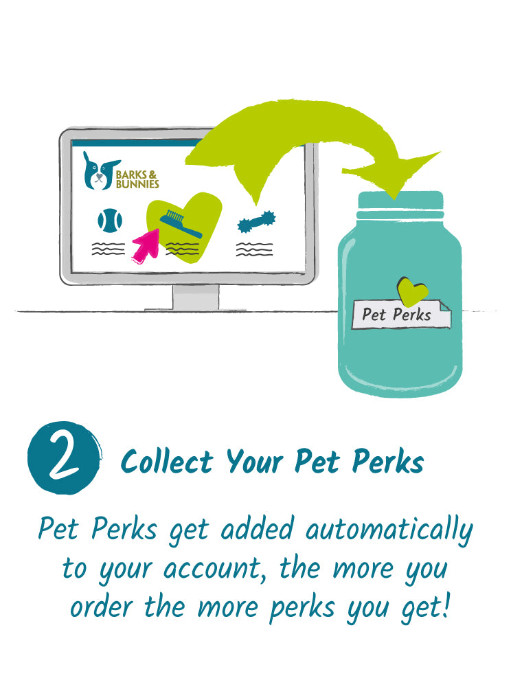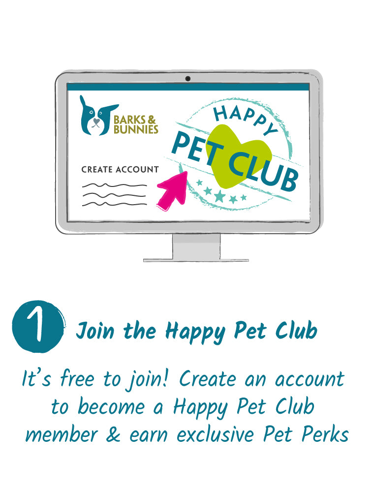 Join the Barks & Bunnies Happy Pet Club and earn 'Pet Perks' to give your furry best friend some extra 'pawket' money for a special treat.