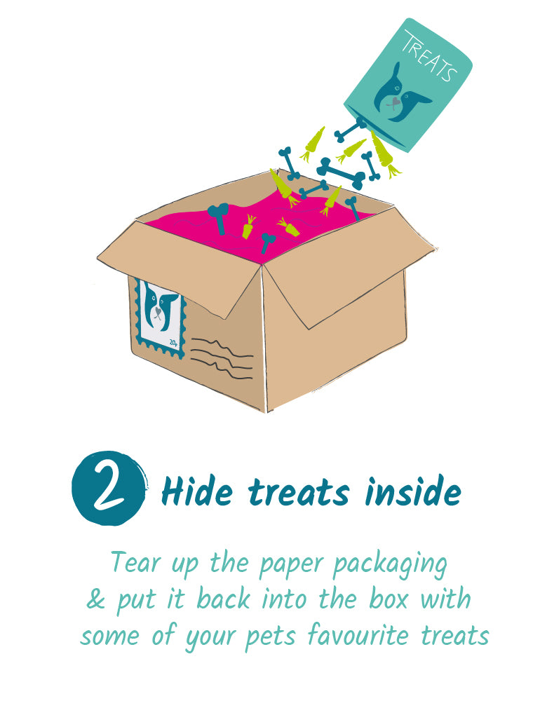 Please note that unless you add treats to your cart as a part of your completed order that Barks & Bunnies do not supply the treats. Not all orders can be despatched in packaging suitable for making your Forage Box. Please try to prevent your pet from consuming any packaging and if you have any concerns about whether it's suitable for your pet please contact your vet first.