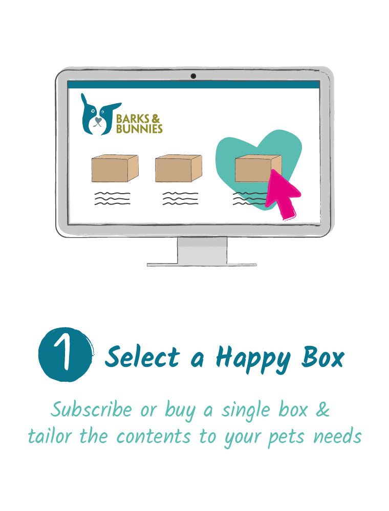 Get your Happy Pet BoxThe contents of your box will be chosen at random and and we keep a record of what we sent so no two boxes are ever the same!